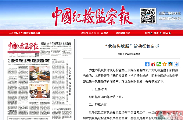 为生动展现新时代纪检监察工作的探索实践和广大纪检监察干部的担当作为,本报特开展“我拍头版照”手机摄影活动,面向全国纪检监察干部征集手机拍摄的新闻图片,择优在头版刊发。有关事宜如下。