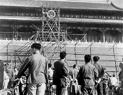 1950年9月30日,中华人民共和国国徽第一次高高悬挂在天安门城楼上。