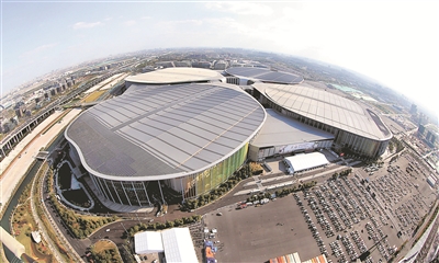 下图:2018年11月5日,上海国家会展中心,首届中国国际进口博览会开幕。上海国家会展中心,一片巨型的“四叶草”,仿佛一个地球村,将参展的各国紧密联系在一起。(资料图片)