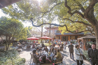 党的十八大以来,全党发扬钉钉子精神,锲而不舍、久久为功,坚定不移纠“四风”、树新风,赢得党心民心。位于浙江杭州西湖曲院风荷公园内的“西湖会”作为高档会所转型试点,率先更名为“开心茶馆”并对外营业。这是市民和游客在“开心茶馆”里喝茶聊天。(新华社记者 徐昱 摄)