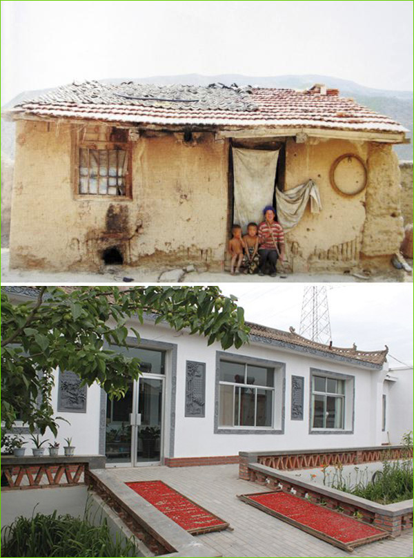 上图为闽宁镇建设早期开发建设者的住房;下图为现在的村民农家小院
