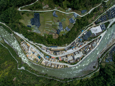 从贡山县城出发到独龙江乡,沿群山盘旋而下,一座漂亮、现代的江边小镇让人眼前一亮。