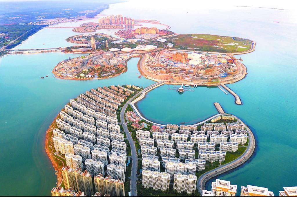 在2021年度“中国十大丑陋建筑”评选中,海南省儋州市海花岛建筑群因“破坏海洋生态,形态怪异杂乱”位列榜首。图为海花岛违规建设与蔚蓝的海洋形成鲜明对比。 (图片来源:视觉中国)