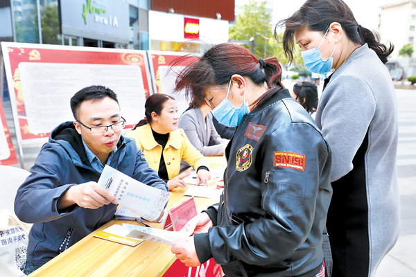 江苏省连云港市海州区纪委监委开展信访宣传专项行动,在乡镇集市、街道人流量大的地方现场接访,倾听群众心声,掌握第一手社情民情。图为该区纪检监察干部向群众讲解信访举报受理流程。 张孟瑞 摄