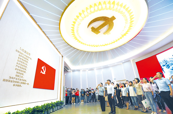 图为党员在上海中共一大纪念馆重温入党誓词。新华社记者 刘颖 摄