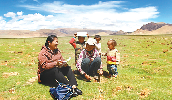 党的十八大以来,各级纪检监察机关发挥监督专责机关作用,持续开展对党中央惠民利民、安民富民各项政策落实情况的监督检查。图为“全国纪检监察系统先进工作者”强巴白珍(左一)在西藏阿里地区革吉县布贡村,向群众了解惠民政策落实情况。 (资料图片)