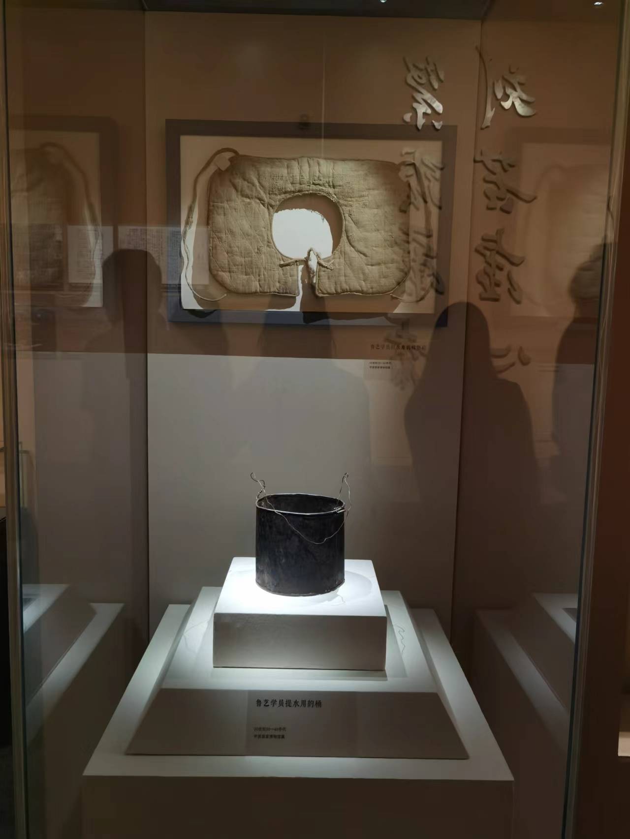 1938年4月10日,鲁迅艺术学院在延安成立。这是抗日战争时期中国共产党为培养抗战文艺干部和文艺工作者而创办的一所综合性文学艺术学校,1940年更名为“鲁迅艺术文学院”,简称“鲁艺”。展览上,一组展现鲁艺学员学习生活的黑白照片以及鲁艺学员担水用的棉垫肩、提水用的桶等实物,将参观者带回那个艰苦朴素却又满怀理想的年代。