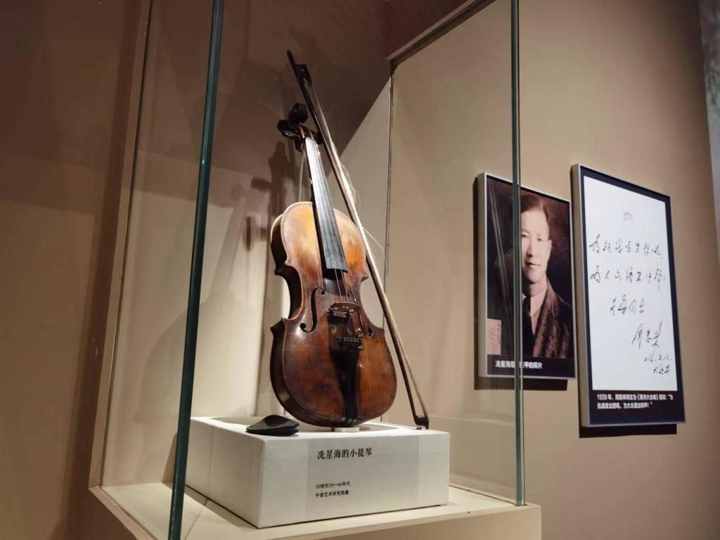 当时的鲁艺汇聚了一大批来自文学、戏剧、音乐、美术等领域的艺术家,冼星海便是其中一位。跟随讲解员的脚步,一把冼星海曾经拉过的小提琴出现在记者眼前。小提琴下方,还陈列着冼星海用过的钢笔以及《黄河大合唱》简谱。